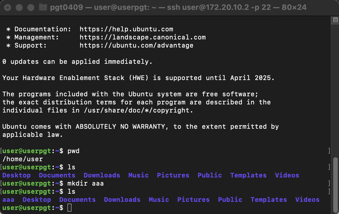 aaa 라는 폴더가 만들어졌는지 확인하자