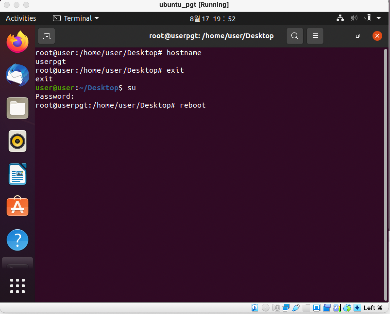 7. 재부팅 후 터미널 확인