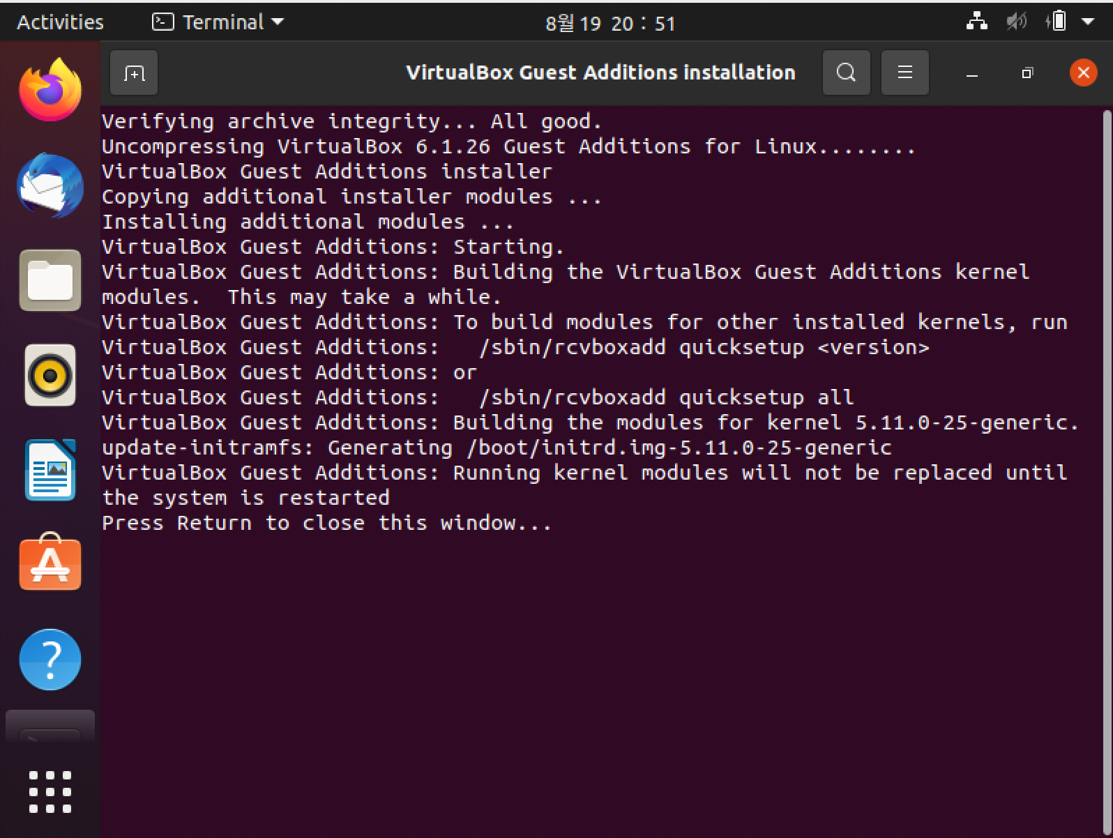 Press Return to close this window... 라는 문구가 뜨면 엔터를 눌러줘보자