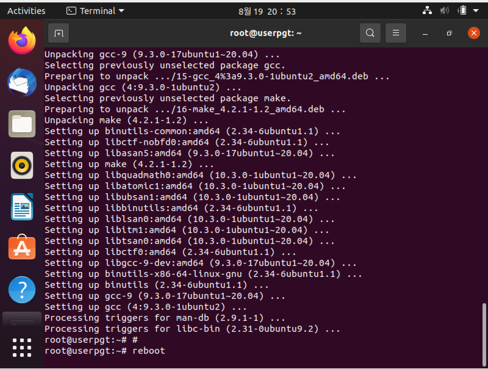 그리고 reboot 명령어로 시스템을 재부팅한다.