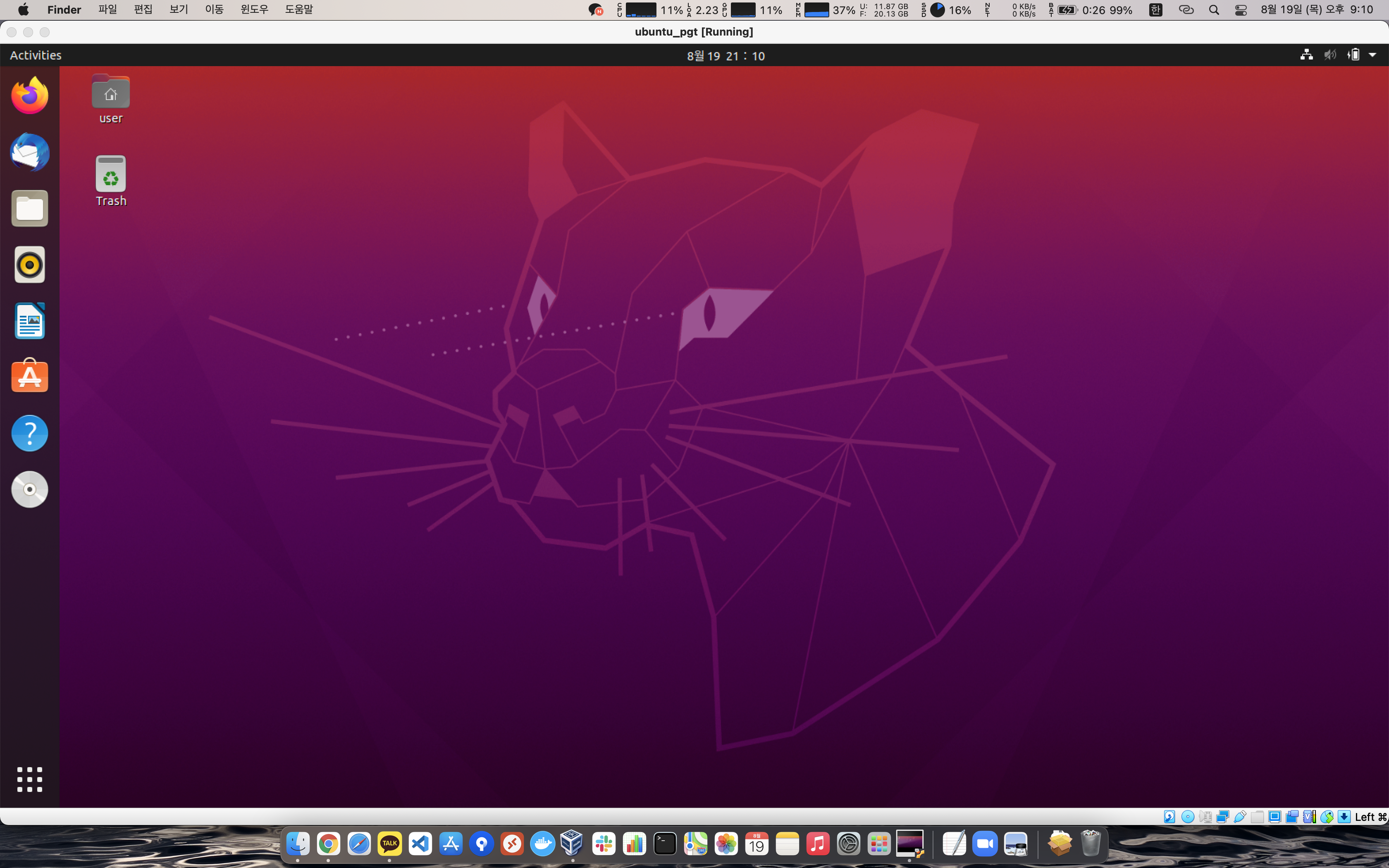 확인을 누르고 우분투를 시작한다.